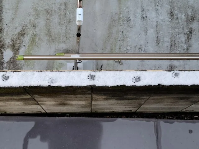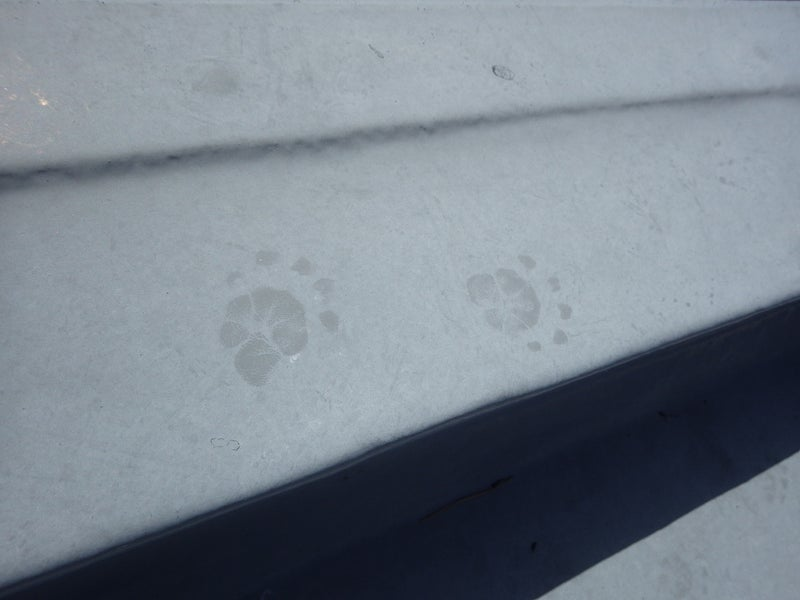 ねぐらやエサ場までの道中にある、市街地の陸橋やベランダなどの手すりでハクビシンの足跡が見つかることがあります。