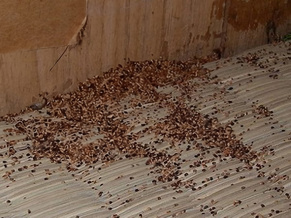 シロアリの中でも「アメリカカンザイシロアリ」として知られる種類は、被害を受けた木材の近くに、砂粒状のフンを排出する特徴があります。